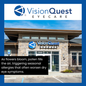 As flowers bloom, pollen fills the air, triggering seasonal allergies that often worsen dry eye symptoms. The body’s natural response to allergens includes inflammation, itching, and excessive tearing, which can disrupt the tear film and leave eyes feeling even drier.